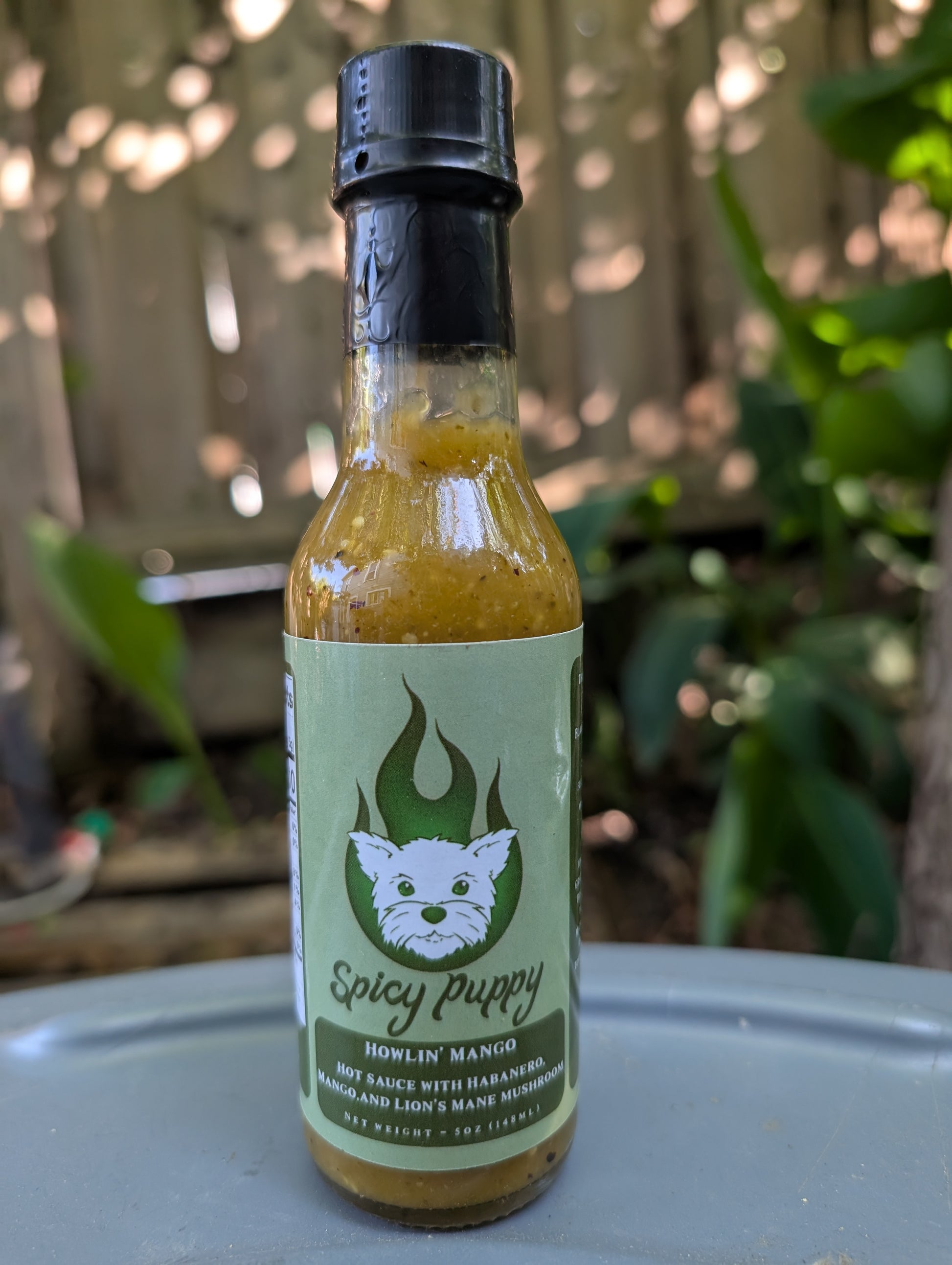 Howlin' Mango - A bold fusion of fire and fruit, this sauce brings together the fiery bite of habanero with the earthiness of poblano and the tropical sweetness of mango. Brightened with grapefruit, while tomatillo and red onion add depth. Koji-fermented rice and lion’s mane mushrooms infuse it with rich umami, amplified by our mushroom garum. Ideal for ceviche, roasted meats, grain bowls, or anything that craves vibrant complexity. This sauce has a spicy 7/10 heat level for those who love spice!